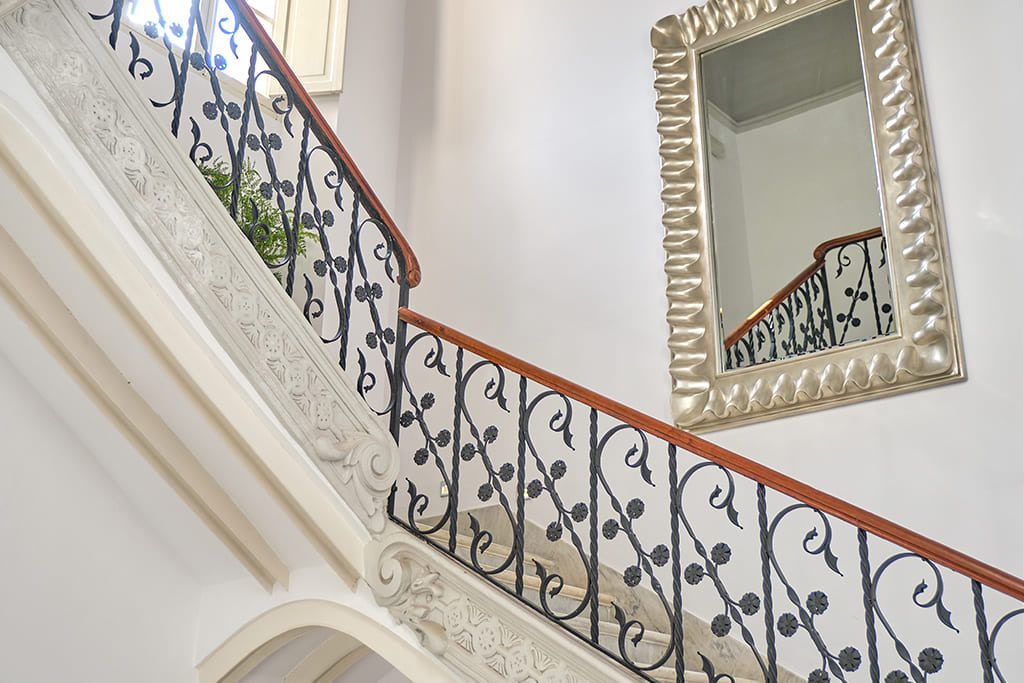 The 12 individually decorated rooms of the hotel L’Avenida are spaciously laid out over three floors, presided by a striking marble and wrought iron staircase.